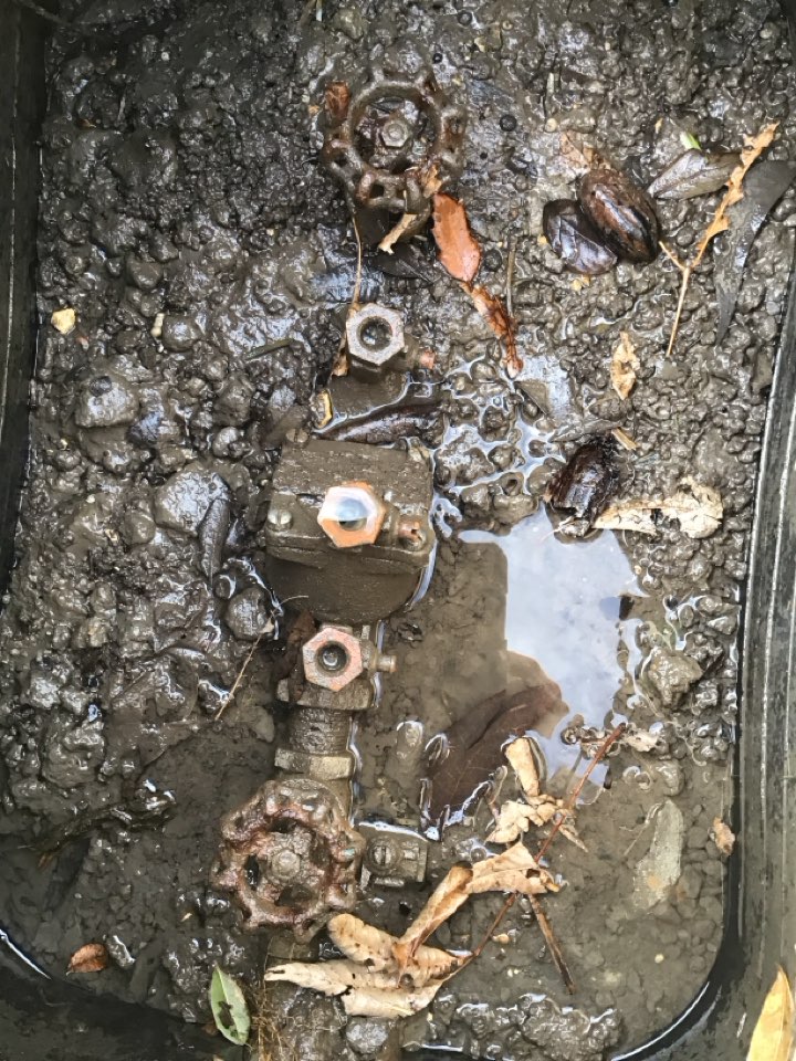 Opening a backflow meter box to shut the mainline down and replace valve #4 for a rain bird system .