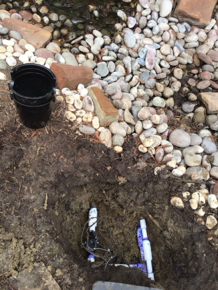 Repairing a mainline and replacing a rain bird valve in a tight spot next to a pond.